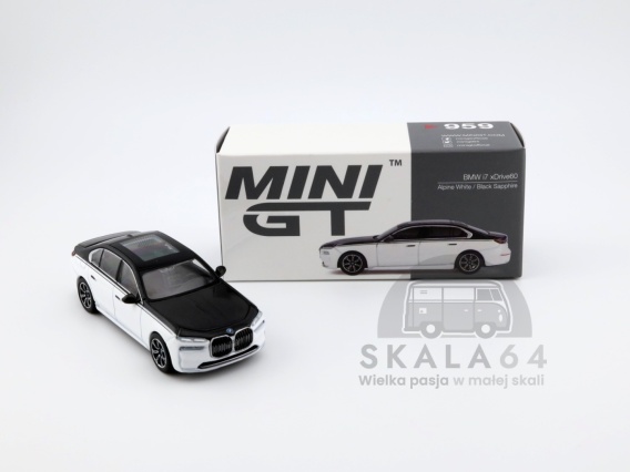 MINI GT BMW i7 xDrive60 Alpine White / Black Sapphire LHD MGT00959-L MiniGT